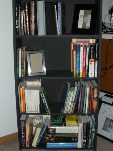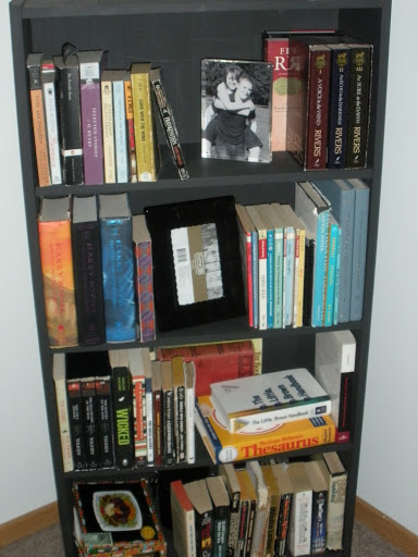 painted and filled bookshelves